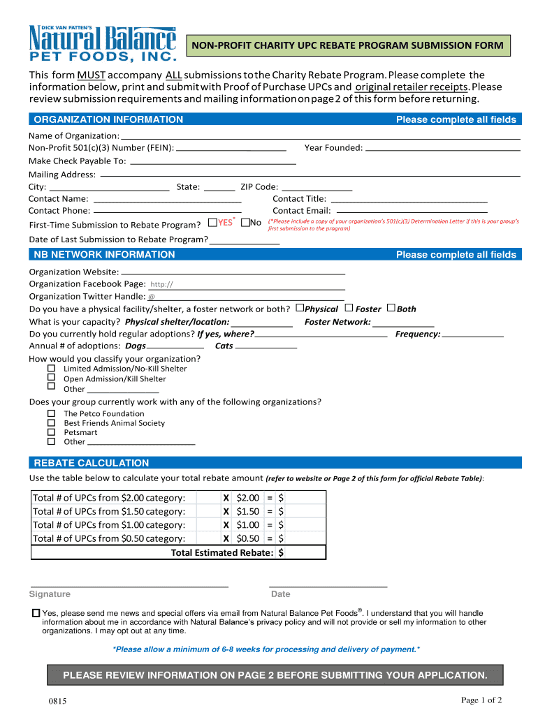 Non-Profit Charity Upc Rebate is not the form you're looking for?Search for another form here.
