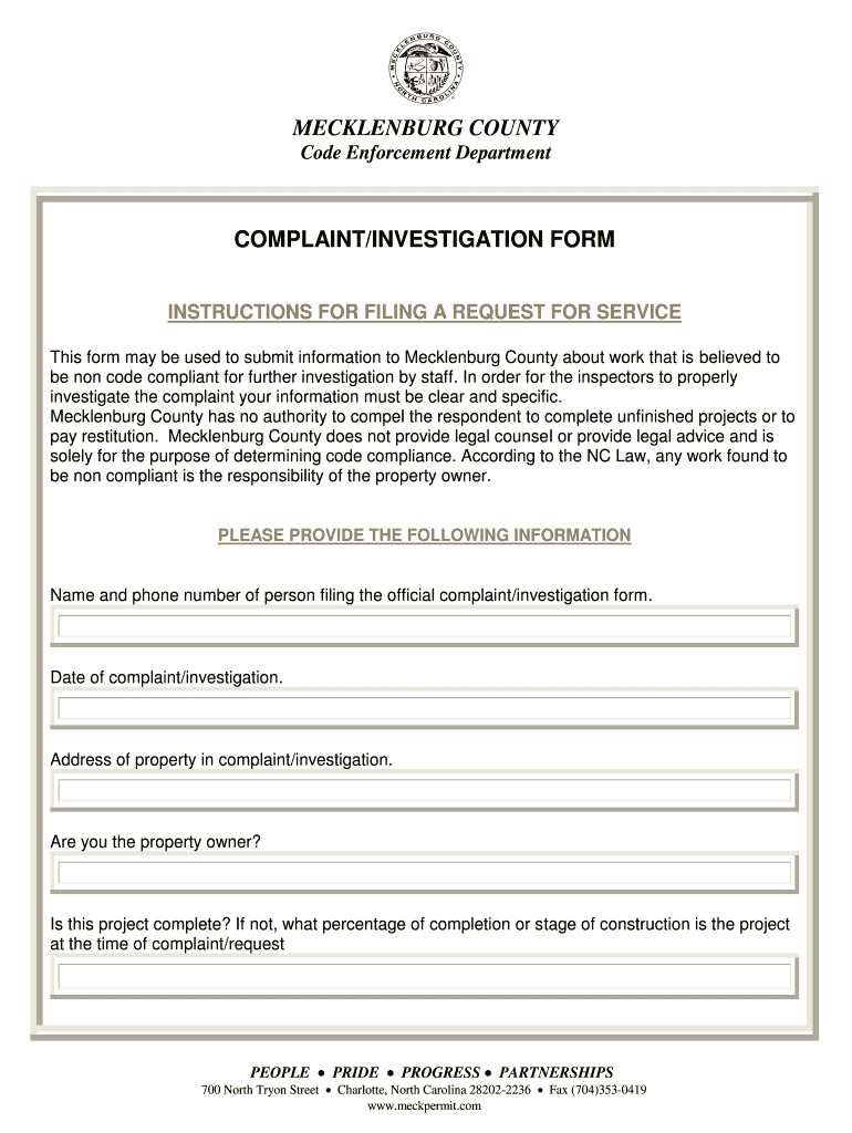 Who Needs the Mecklenburg County Code Enforcement Complaint Form?