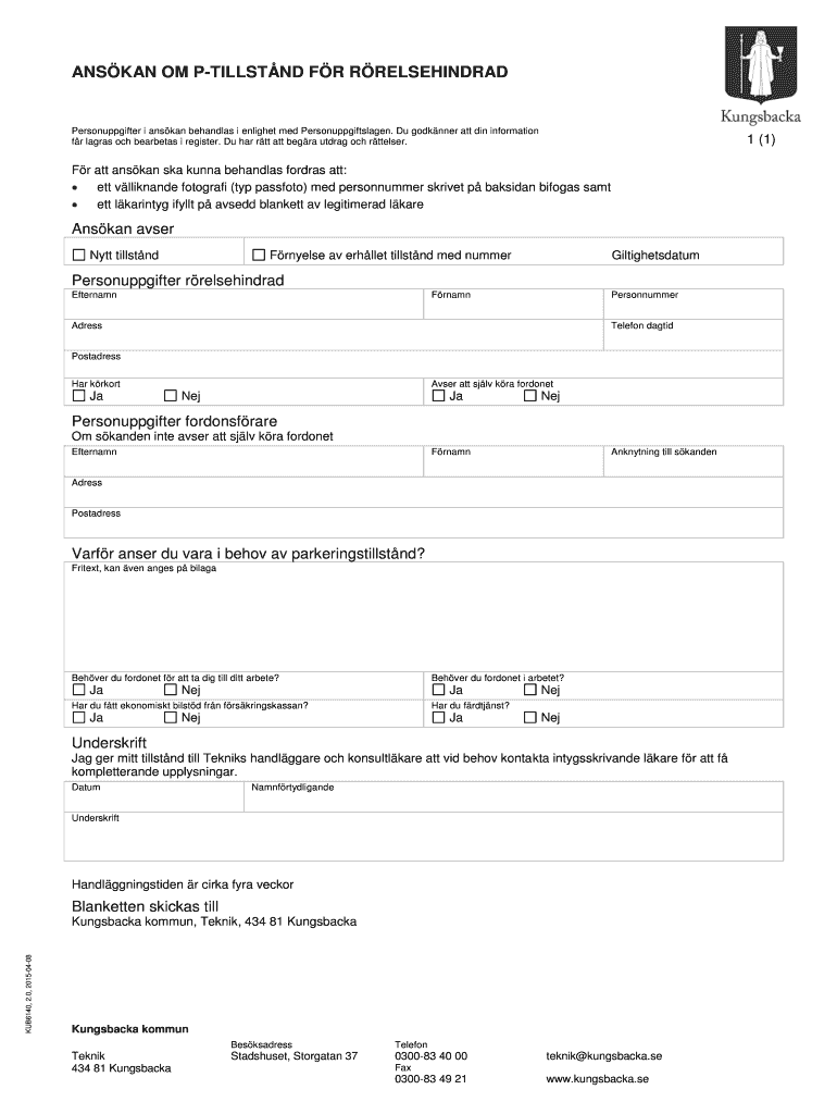 Anskan om p-tillstnd fr can be filled out online or in person at the designated office.