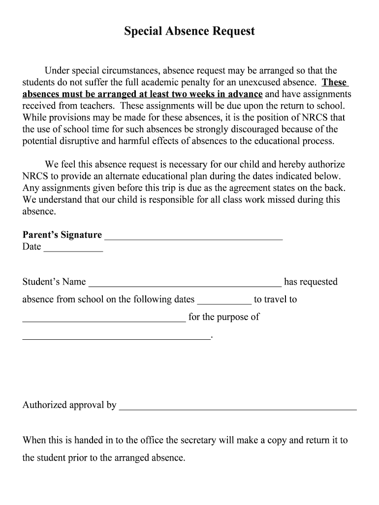 Get the free Special Absence Request