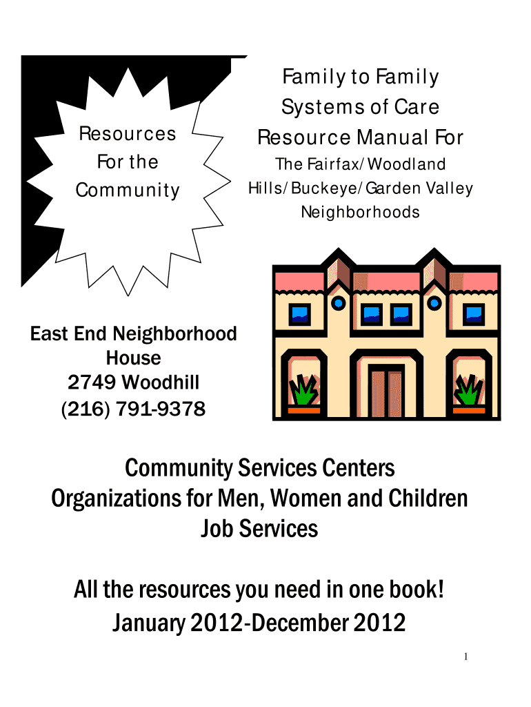 Resources For the Community Family to Family Systems of Care Resource Manual For The Fairfax×Woodland Hills×Buckeye×Garden Valley Neighborhoods East End Neighborhood House 2749 Woodhull (216) 791-9378