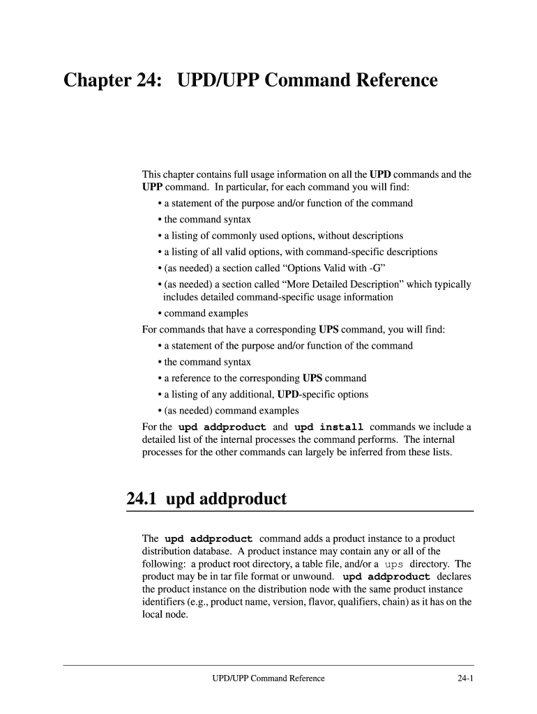 This chapter provides comprehensive usage information on all UPD and UPP commands, including details on command syntax, options, examples, and specific usage contexts.