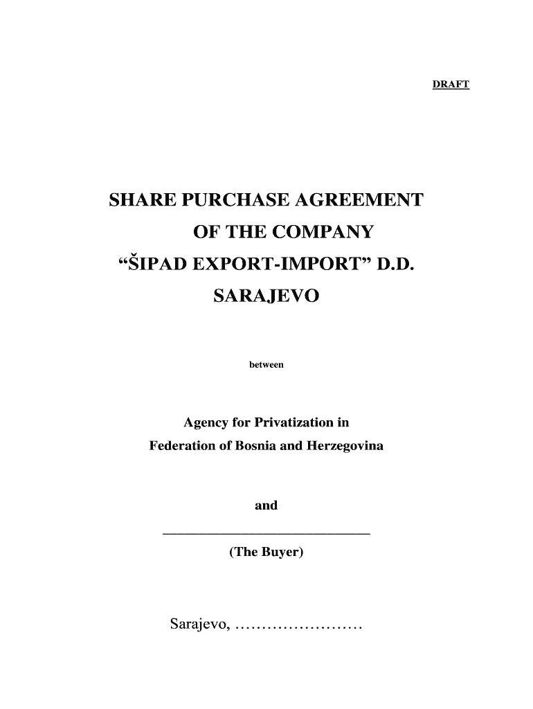 DRAFT SHARE PURCHASE AGREEMENT OF THE COMPANY iPad EXPORTIMPORT D.D. SARAJEVO between Agency for Privatization in Federation of Bosnia and Herzegovina and (The Buyer) Sarajevo, Agreement Parties Agency