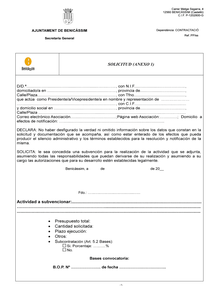 Get the free P1202800G Dependncia: CONTRACTACI AJUNTAMENT DE BENICSSIM Ref - ayto benicassim