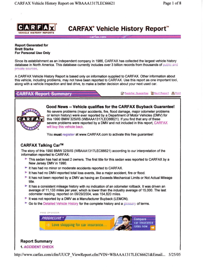 Page 1 of 8CARFAX Vehicle History Report on WBAAA1317LEC66621CIAIRIFIA