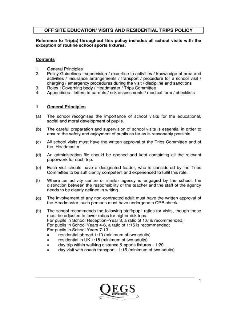 Get the free SCHOOL VISITS POLICY - Queen Elizabeths Grammar School