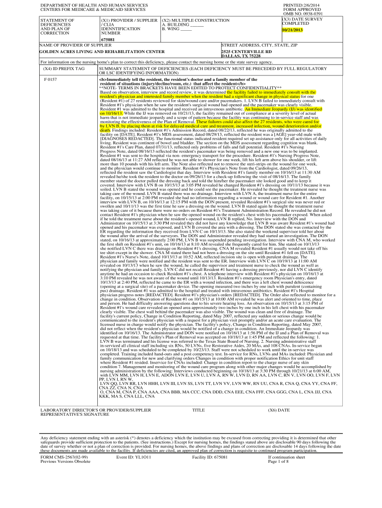 Get the free Nursing Home Survey Report Details for GOLDEN ACRES LIVING AND REHABILITATION CENTER...