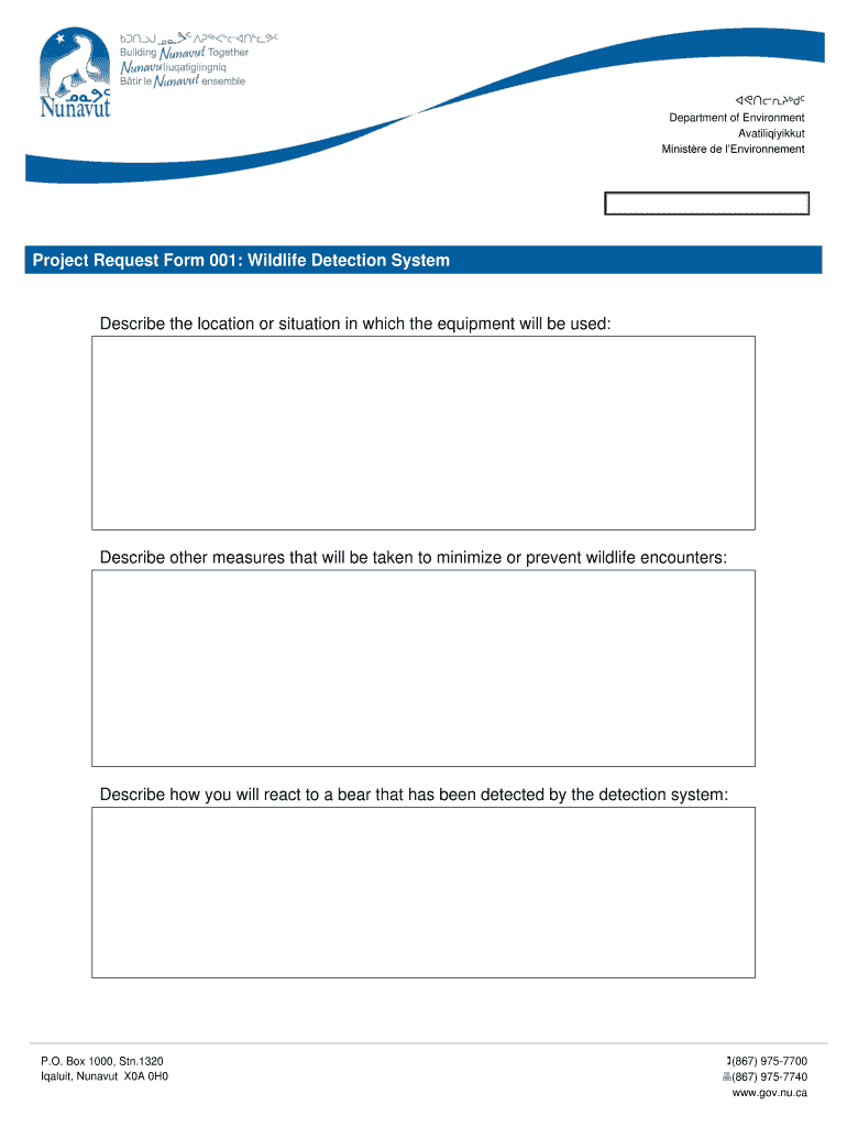 Project Request Form 001: Wildlife Detection System is a formal document used to initiate a project aimed at developing or improving a wildlife detection system designed to monitor and manage wildlife populations.