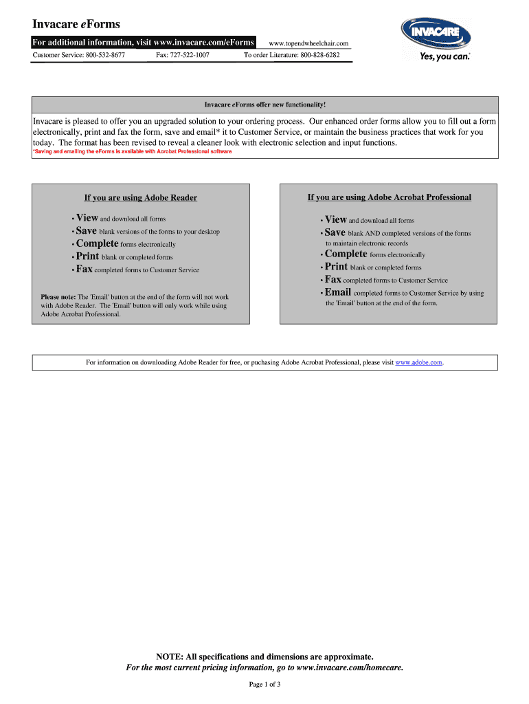 Invader forms For additional information, visit www.invacare.com×forms Customer Service: 8005328677 Fax: 7275221007 www.topendwheelchair.com To order Literature: 8008286282 Invader forms offer new