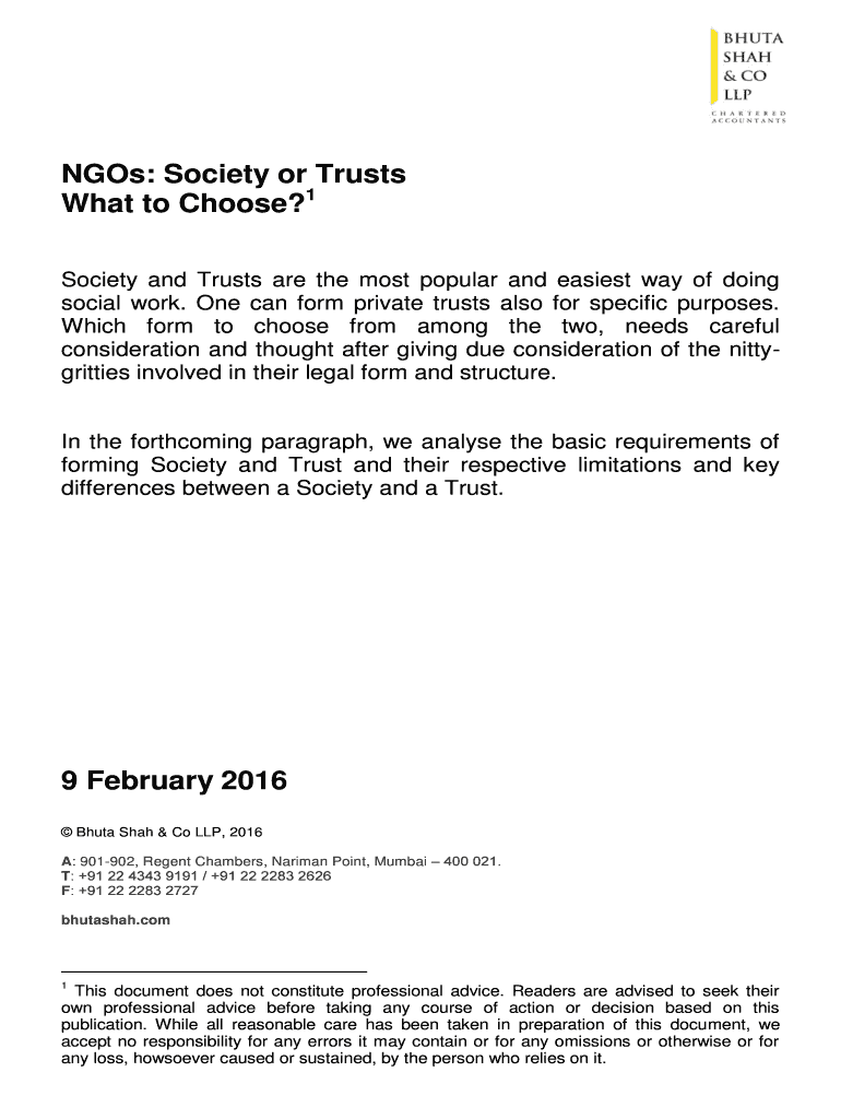 NGOs, societies, or trusts are organizations that are formed for charitable, social, educational, religious, or other non-profit purposes.