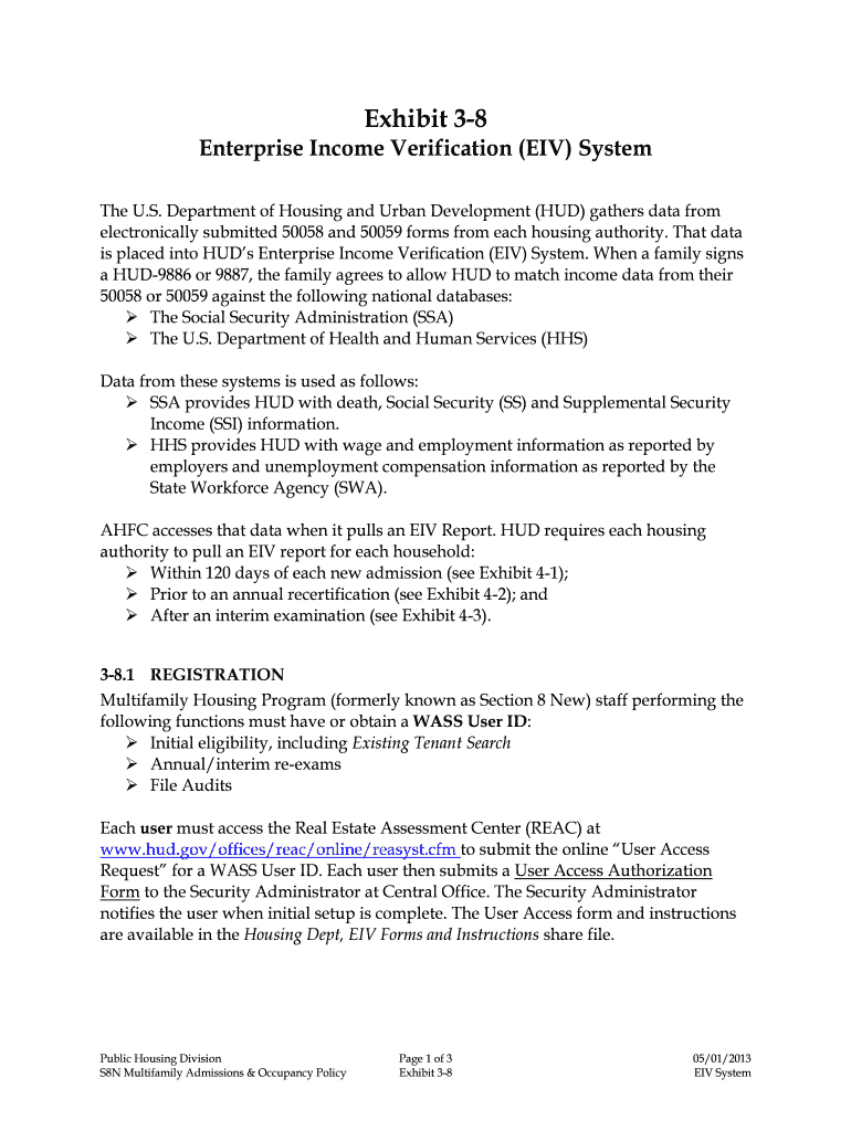 Exhibit 38 Enterprise Income Verification (EIC) System The U.S. Department of Housing and Urban Development (HUD) gathers data from electronically submitted 50058 and 50059 forms from each housing