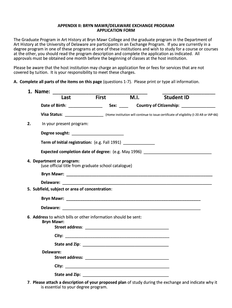 How to fill out bryn mawr delaware exchange program?
