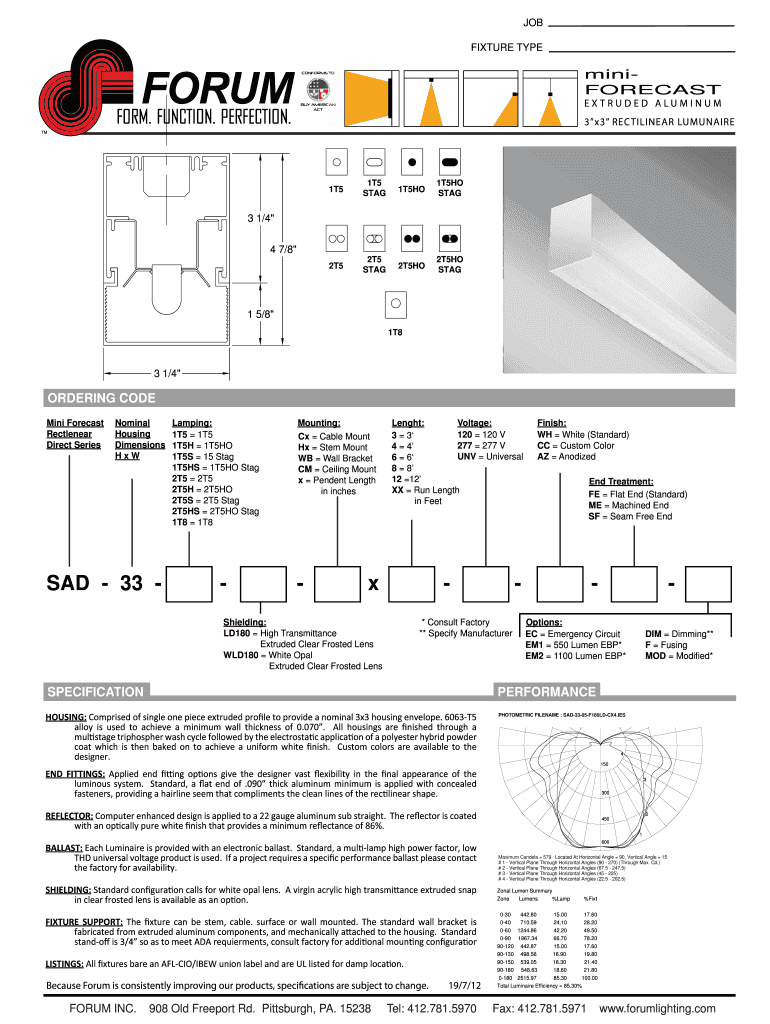 JOB FIXTURE TYPE miniFORECAST CONFORMS TO EXTRUDED ALUMINUM BUY AMERICAN ACT 3×3 REC BILINEAR LUMINAIRE 1T5 STAG 1T5HO STAG 2T5 STAG 2T5HO STAG 3 1×4 4 7×8 1 5×8 1T8 3 1×4 ORDERING CODE Mini