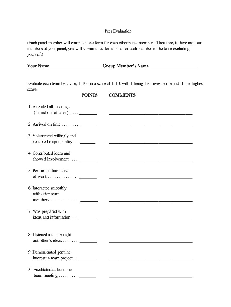 Get the free Peer Evaluation Form
