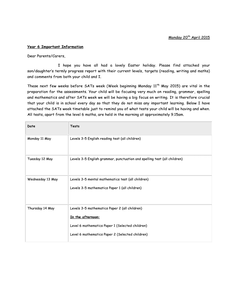 Get, Create, Make and Sign year 6 important information