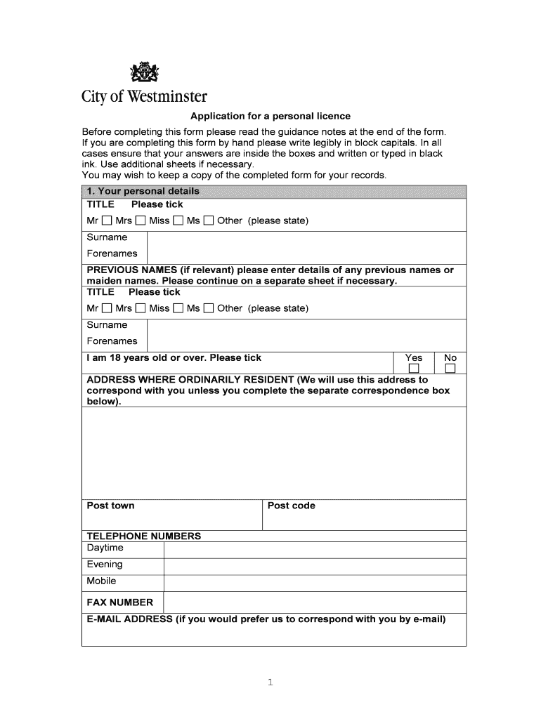 Get the free Application for a personal licence - www3 westminster gov