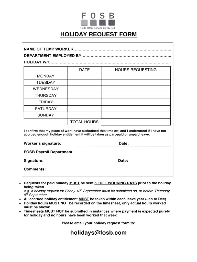 HOLIDAY REQUEST FORM