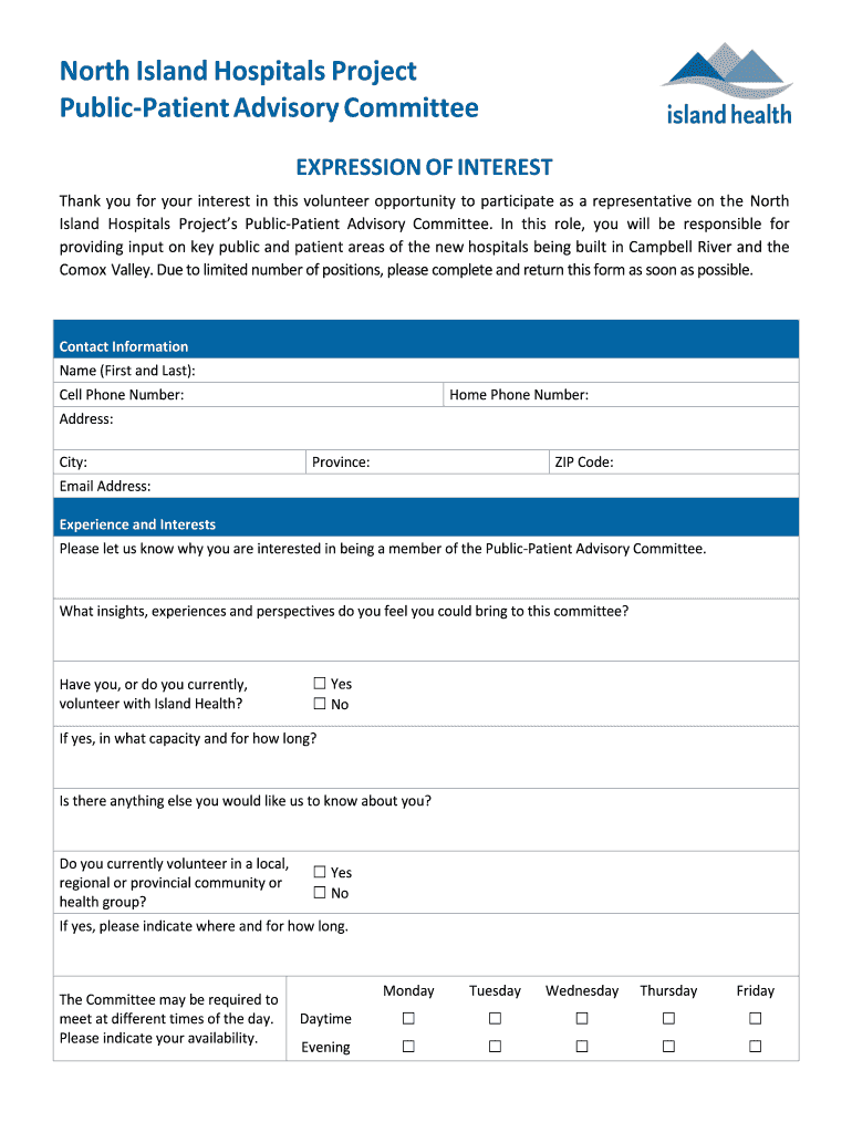Get the free North Island Hospitals Project Public-Patient Advisory - nihp viha
