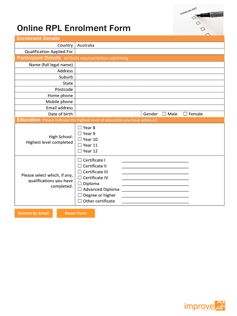 Get the free Online RPL Enrolment Form - The Improve Group
