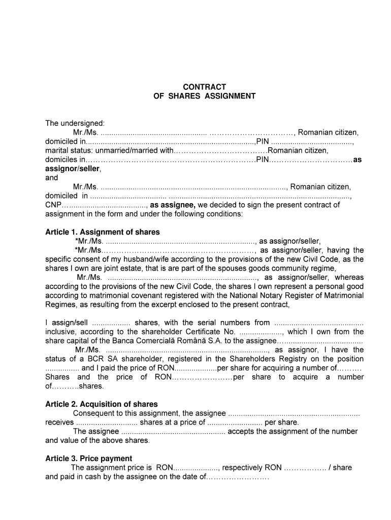 Shares assignment can typically be filled out online or through paper forms provided by the relevant authorities.