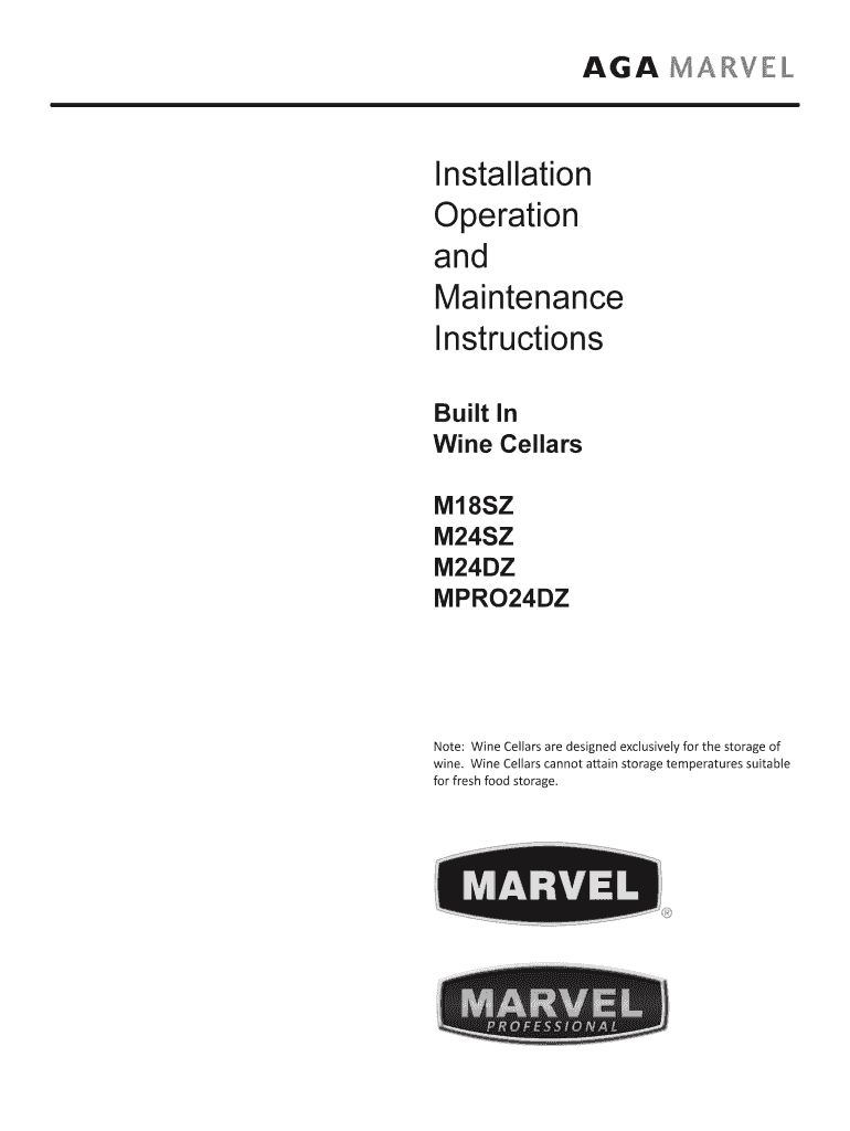 Installation Operation and Maintenance Instructions Built In Wine Cellars M18SZ M24SZ M24DZ MPRO24DZ Note: Wine Cellars are designed exclusively for the storage of wine. Wine Cellars cannot attain