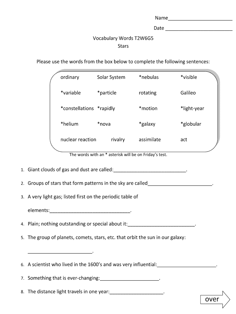 Get the free Name Stars Please use the words from the box below to
