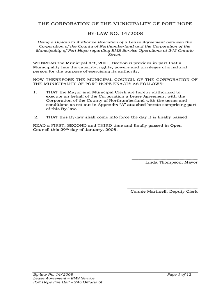 By-Law 14-2008lease Agreement is not the form you're looking for?Search for another form here.