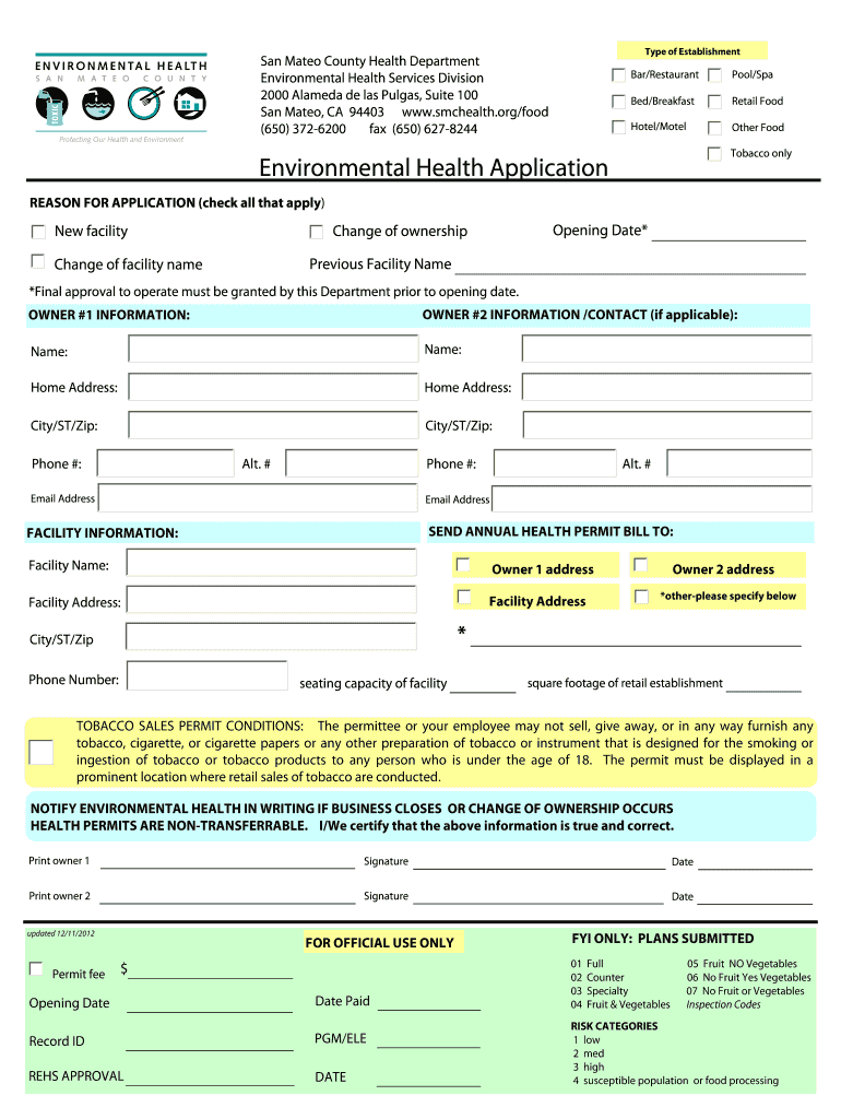 Get the free Environmental Health Application - San Mateo Health System - smchealth