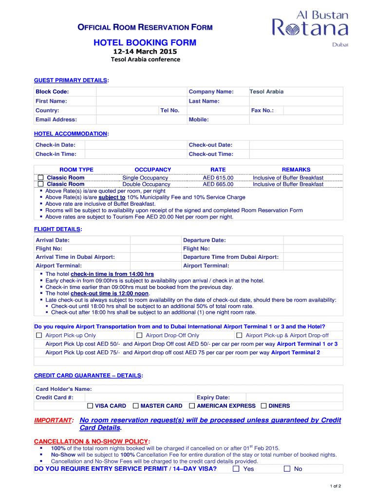 Get the free OFFICIAL ROOM RESERVATION FORM - tesolarabia