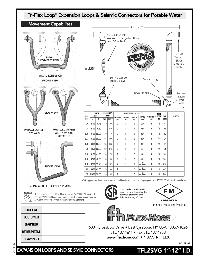 Trifle Loop Expansion Loops & Seismic Connectors for Potable Water Movement Capabilities A .125 321ss Close Pitch Annular Corrugated Hose and 304ss Braid 321ss Close Pitch Annular Corrugated Hose
