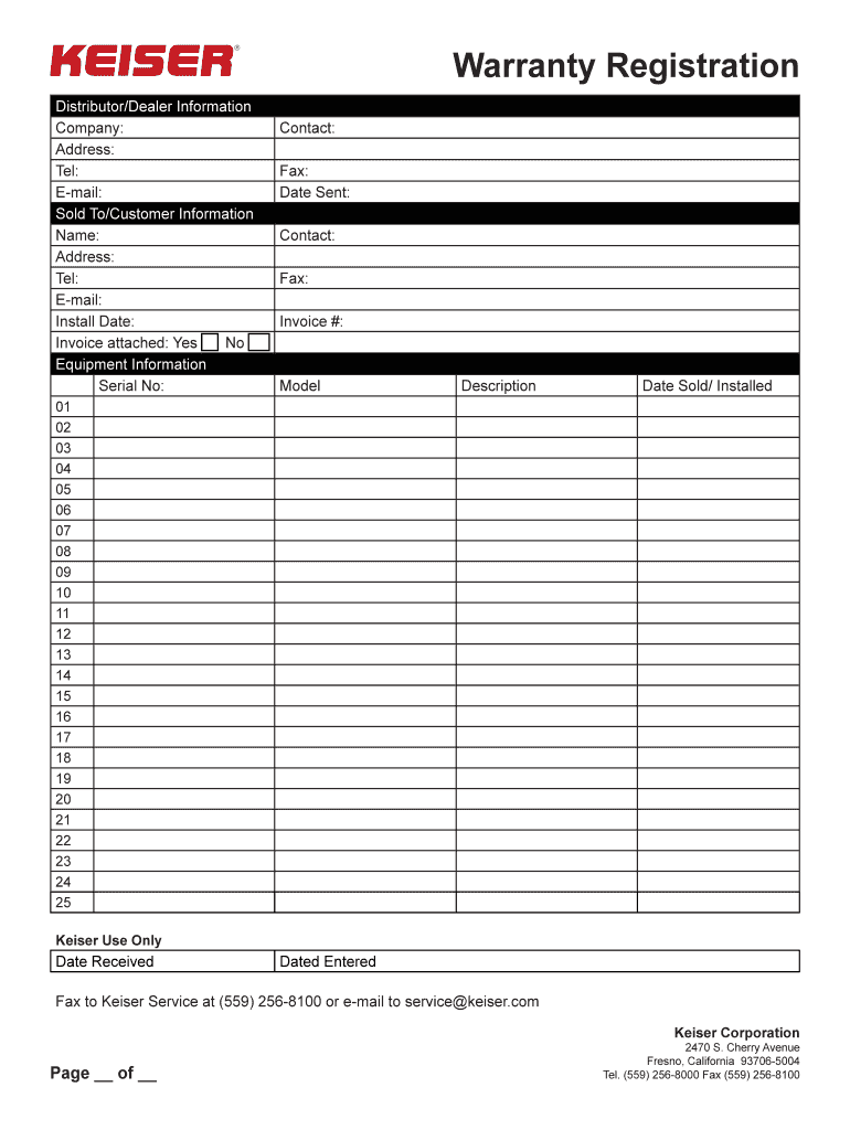 All Laser equipment sold by Laser distributors, dealers, or salespeople must be registered for warranty purposes.