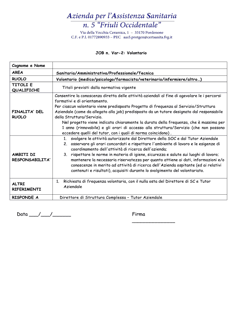 Ottieni il gratuito All 5 Job Description volontari - ass6 sanita fvg