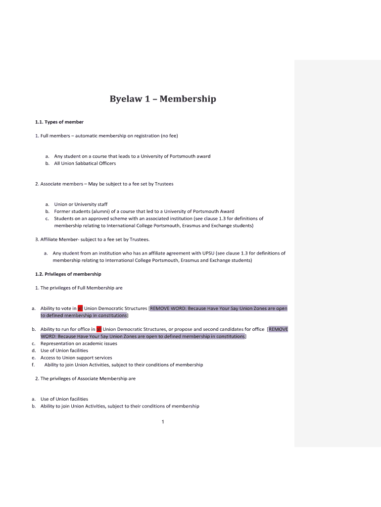 Bylaw 1 Membership 1.1. Types of member 1. Full members automatic membership on registration (no fee) a. Any student on a course that leads to a University of Portsmouth award b. All Union Sabbatical