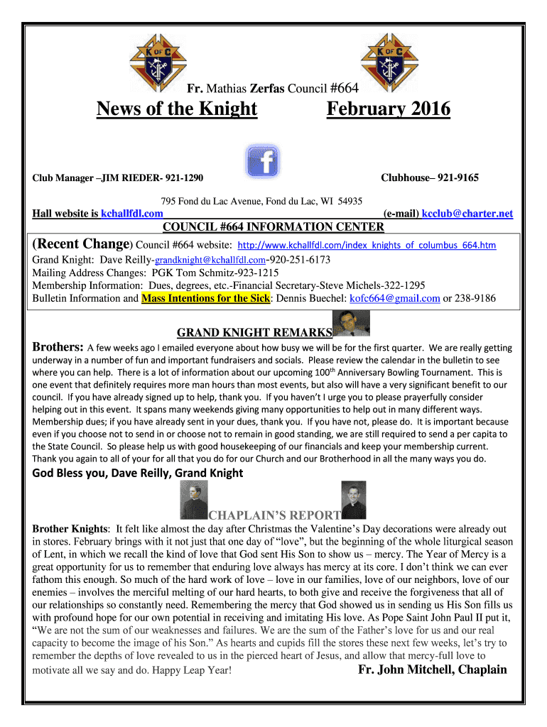 Get the free News of the Knight February 2016 - Knights of Columbus