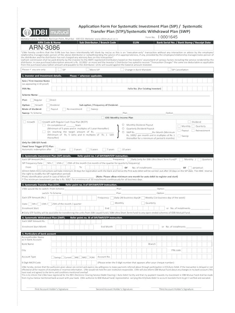 Obtain the Application Form for SIP/STP/SWP from your financial institution or download it from their website.