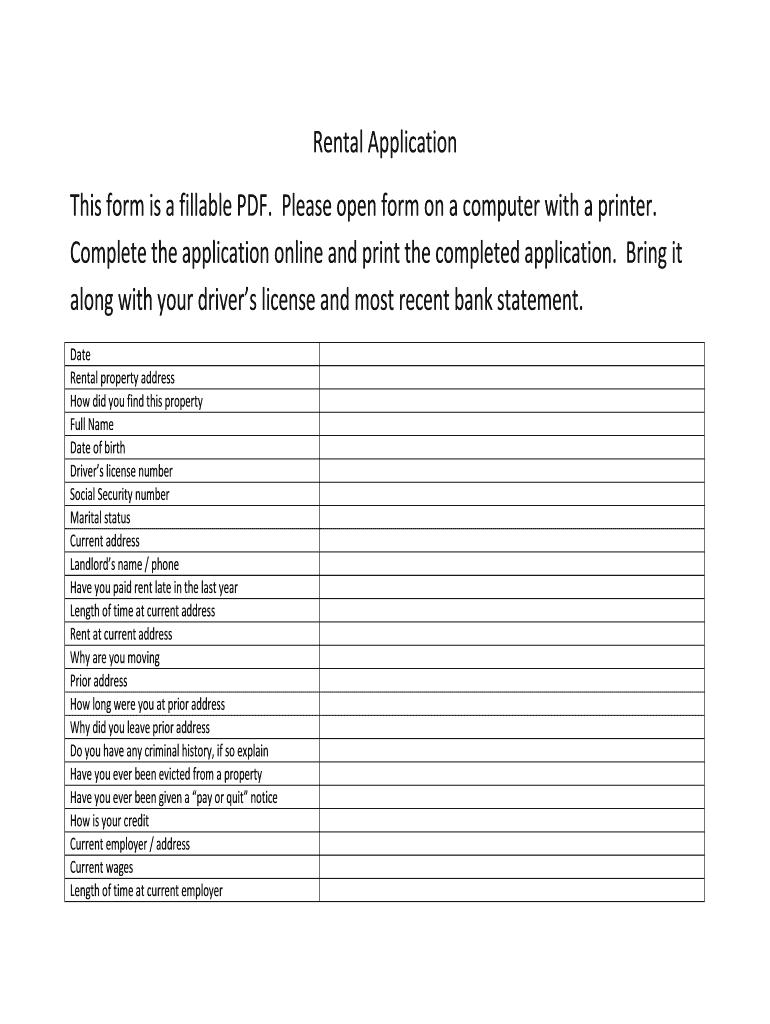 Get the free BRental Applicationb This form is a bfillableb PDF Please open form on a bb