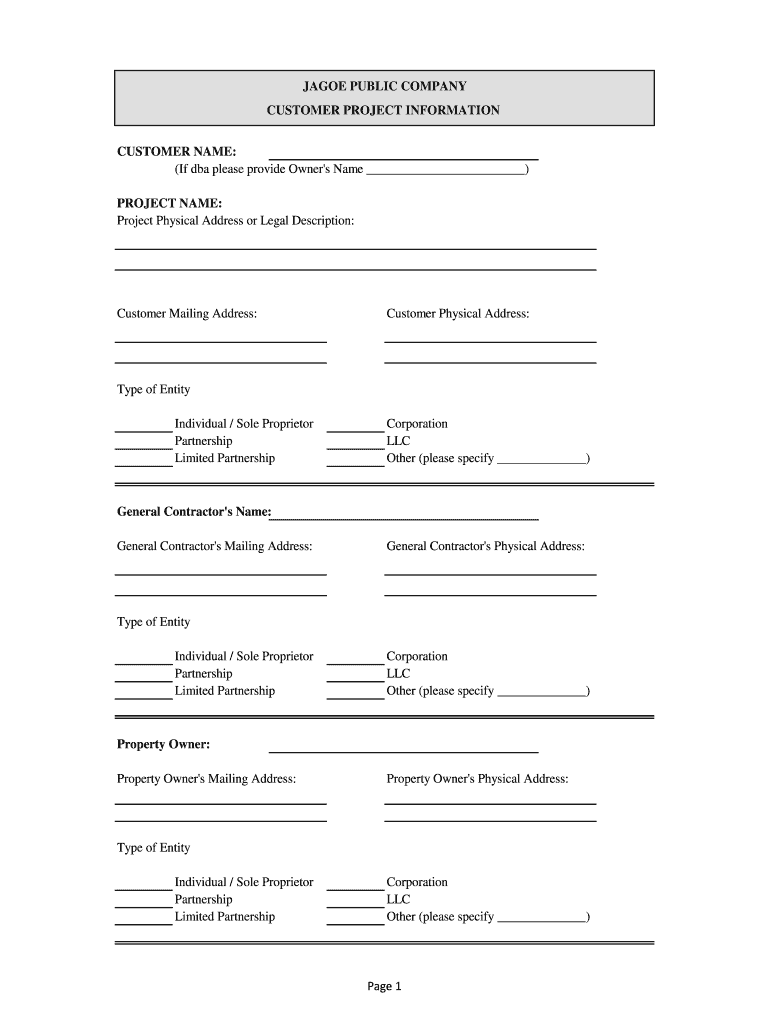 Get the free JAGOE PUBLIC COMPANY CUSTOMER PROJECT INFORMATION CUSTOMER
