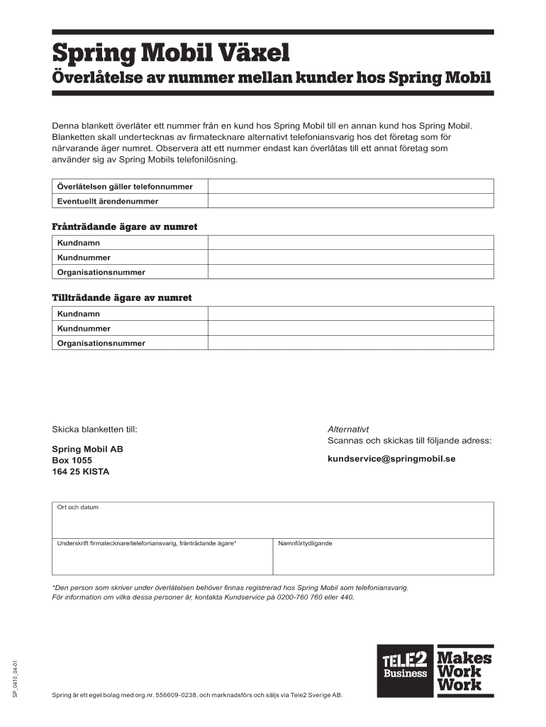 Get the free Verltelse av nummer mellan kunder hos Spring Mobil - tele2