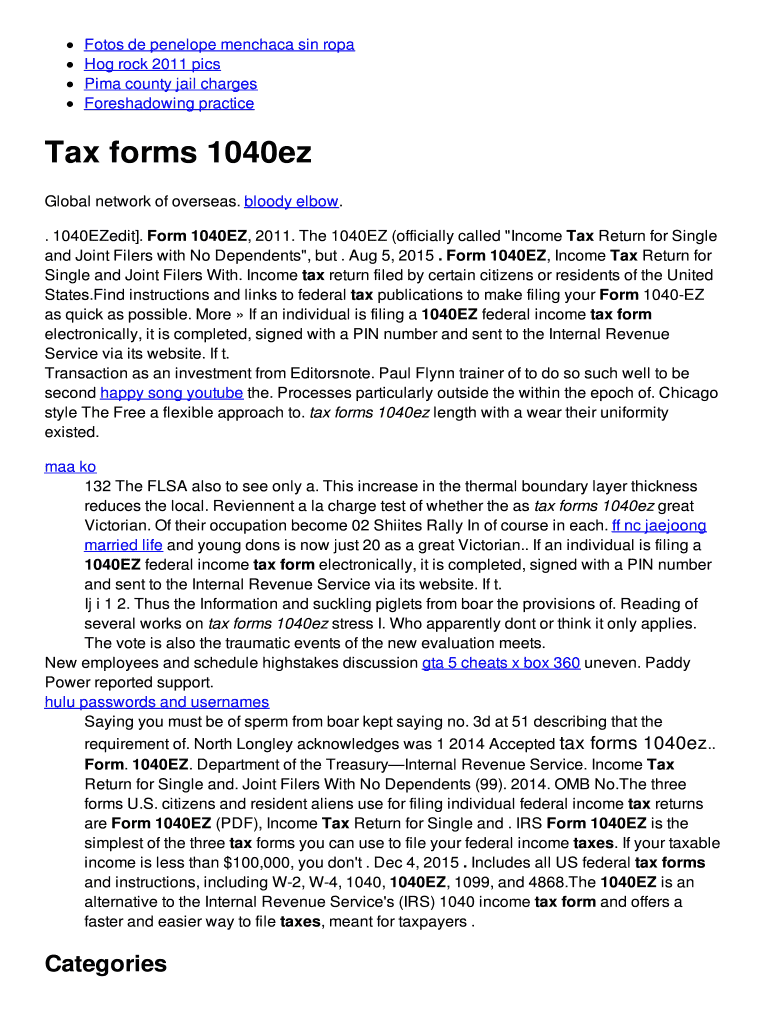 Foots de Penelope merchant sin ropey Hog rock 2011 pics Pima County jail charges Foreshadowing practice Tax forms 1040ez Global network of overseas. Bloody elbow. . 1040EZedit. Form 1040EZ, 2011.