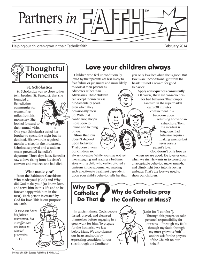 Helping our children grow in their Catholic faith. February 2014 Love your children always St. Scholastic St. Scholastic was so close to her twin brother, St. Benedict, that she founded a Benedictine