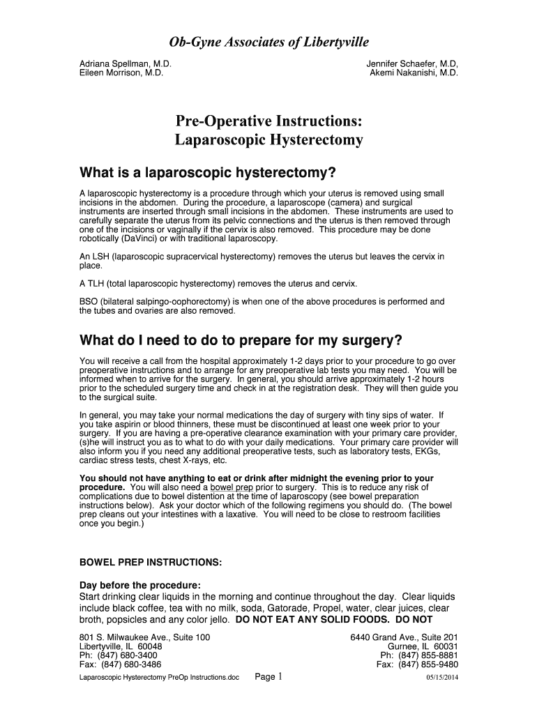 How to fill out laparoscopic hysterectomy preop instructionsdoc