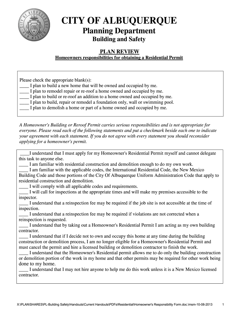 Get the free Homeowner's Residential Permit Application