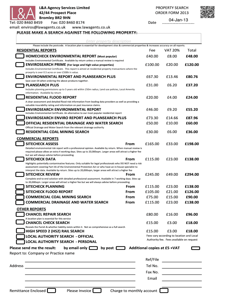Get the free Property Search Order Page - L&A Agency Services Limited