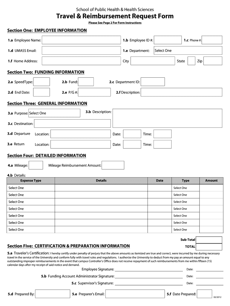 Get the free Travel amp Reimbursement Request bFormb - INSTRUCTIONS - umass