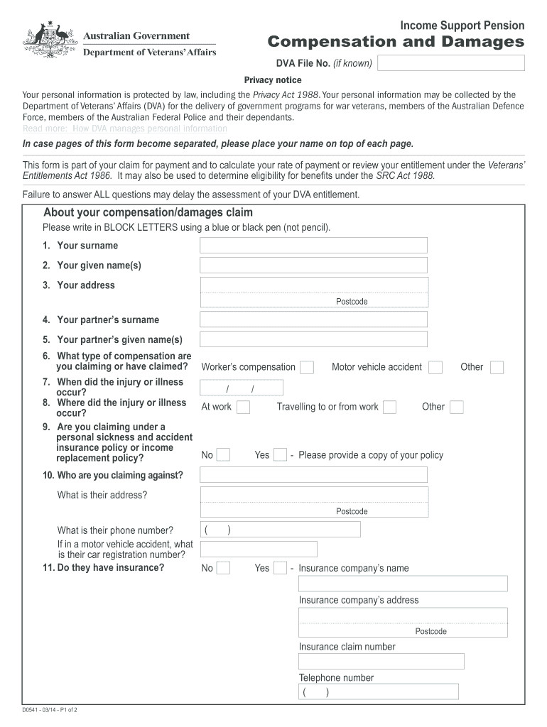 The Income Support Pension Compensation Claim Form is integral for eligible veterans, members of the Australian Defence Force (ADF), members of the Australian Federal Police (AFP), and their dependants. This form facilitates the compensation process outlined in the Veterans’ Entitlements Act 1986, enabling claimants to formally request compensation and damages.