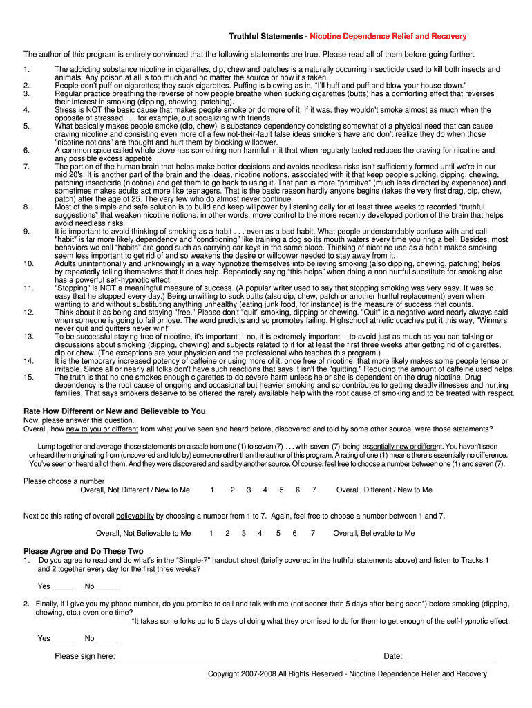 Get the free Nicotine Dependence - Truthful Statements Bring Relief Truthful Statements for Nicot...