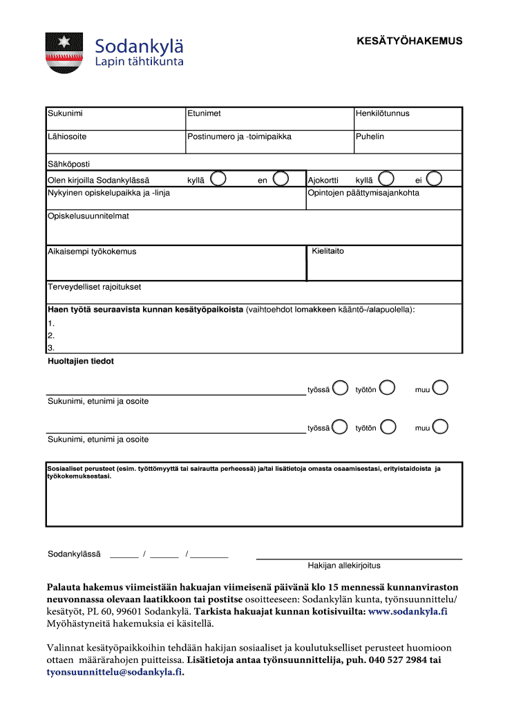 KESTYHAKEMUS Subunit Eunice Henkiltunnus Lhiosoite Postinumero JA toimipaikka Public Shipos Olen kirjoilla Sodankylss kill Nykyinen opiskelupaikka JA Linda en Ajokortti kill an Opinion pttymisajankohta