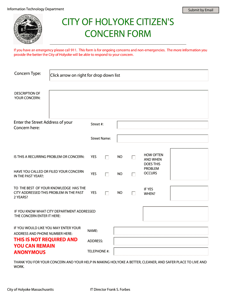 Get the free Holyoke Citizen's Concern Form