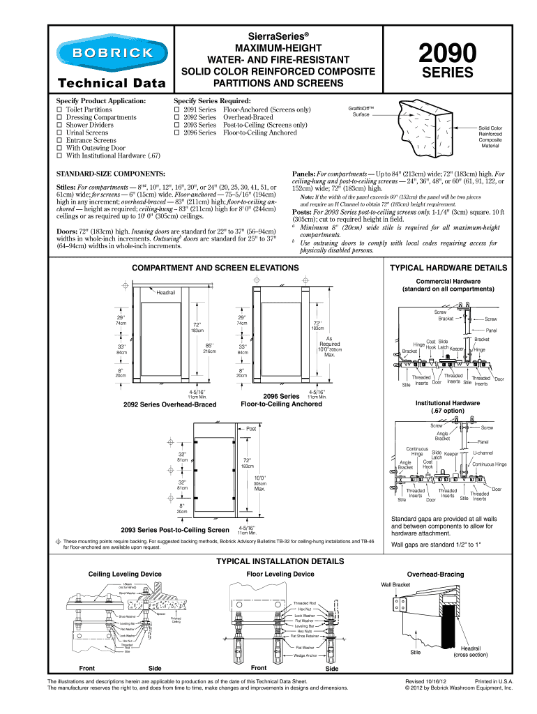 SierraSeries maximumHEIGHT water and fire resistant Solid Color Reinforced Composite partitions and screens Technical Data Specify Product Application: Toilet Partitions Dressing Compartments Shower
