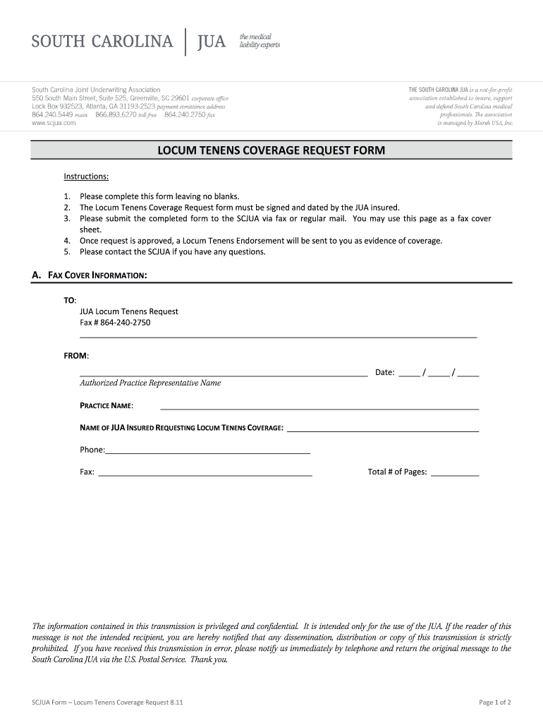 Get the free SCJUA bFormb - bLocumb Tenens Coverage Request - Suite 525 - 811